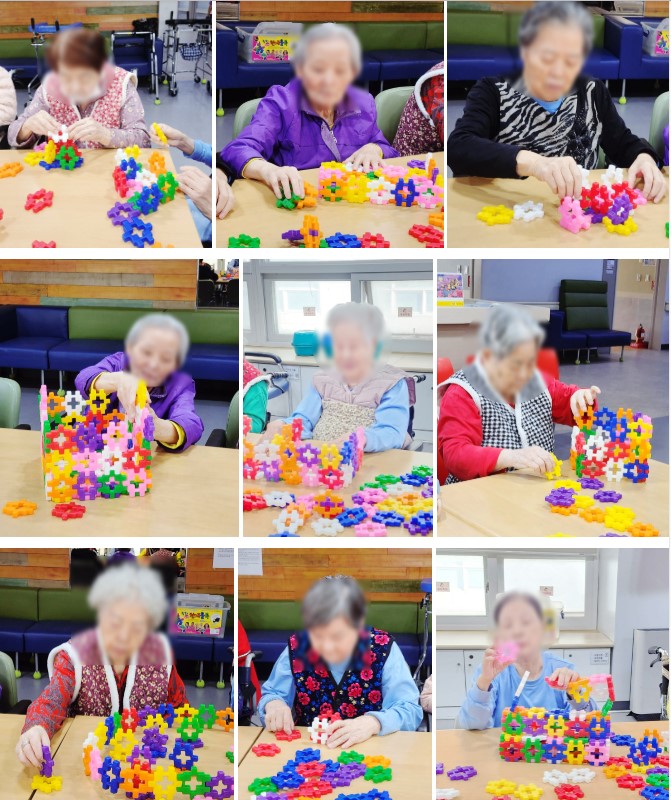#인천시 요양원 #인천시 계양구 #계양구에서 어르신 잘 모시는 요양원 #빅토리아요양원 #재미있는 인지프로그램 #인지기능향상프로그램 | 인지프로그램-와플블럭 페이지 정보 작성자 빅토리야요양원 작성일26-01-05 09:02 조회24회 댓글0건 이전글 다음글 목록 답변 본문 신체요소를 적극 활용하여 두뇌를 자극하며, 와플블럭을 만들면서 사물에 대한 형태를 자세히 익힌다. 이전글 다음글 목록 답변