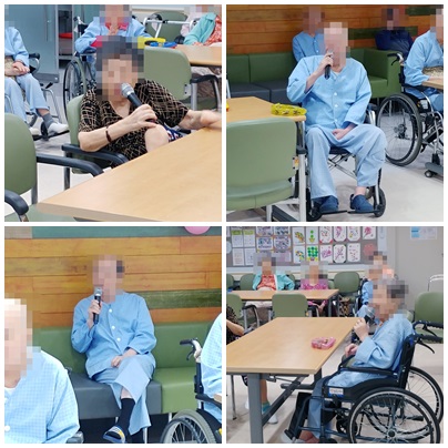저희 요양원의 네분이 가수분입니다~ 마이크를 놓지 않고 신나게 불러주셨답니다^^