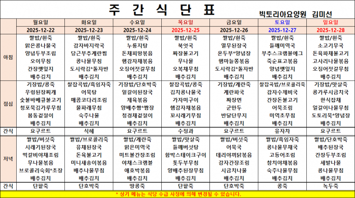 12월 4주차 식단