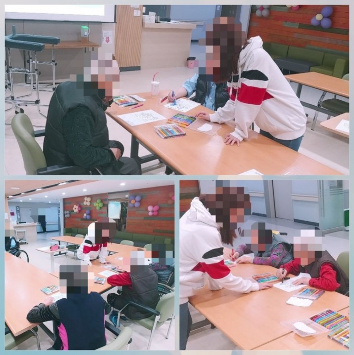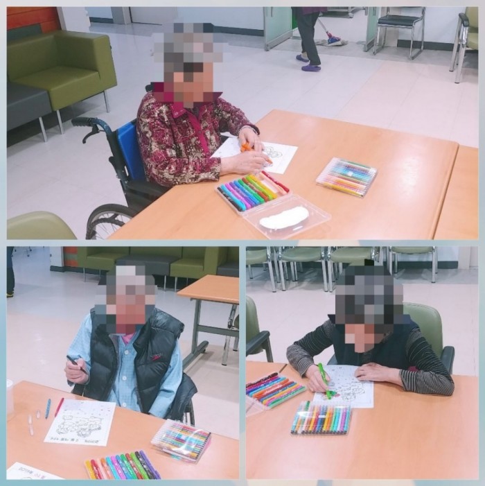 윷놀이 그림도 알록달록하게 색칠하고 달력 숫자도 그려보는 시간이였는데 어르신들께서 토요일, 일요일은 파란색 빨간색으로 나누어 정확하게 적어야 하신다고 말씀하셨습니다~ 오전 프로그램이라 프로그램 참여해주는 어르신들이 적었지만 같은 방 쓰시는 어르신들 몫까지 다 완성해주셔서 진행자가 상두대에 붙여드렸더니 좋아해주셨습니다^^