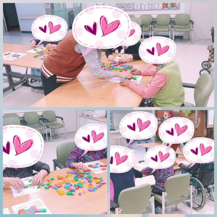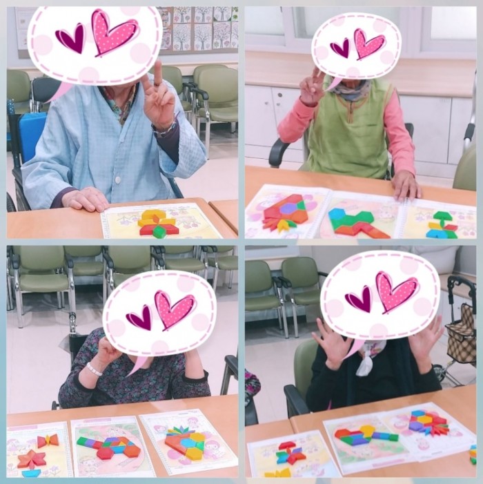 맛보기로 쉬운 도안부터 어려운 도안까지 총 3가지를 진행해보았느데 어르신들께서 망설임도 없이 쉽게 맞춰주셨습니다.