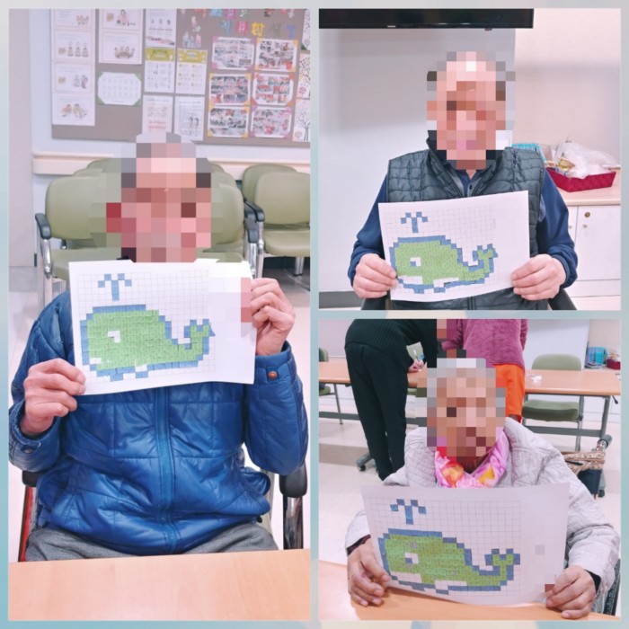 고래가 그려진 도안에 숫자가 적혀있는 색종이를 알맞게 붙여 그림을 완성해 작품을 만드는 시간이었습니다.