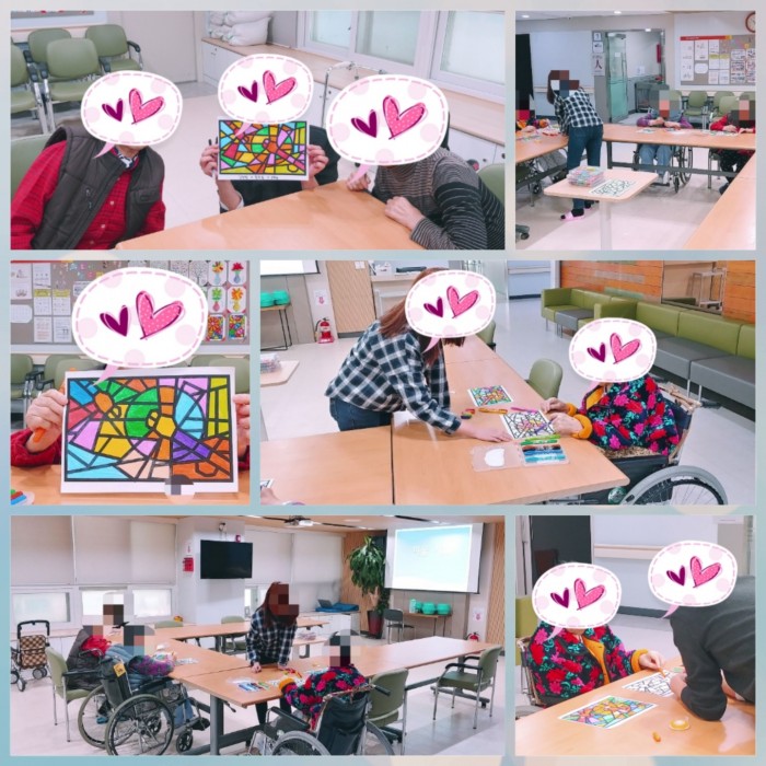 19.01.17___미술치료(색칠하기) 활동 사진입니다.