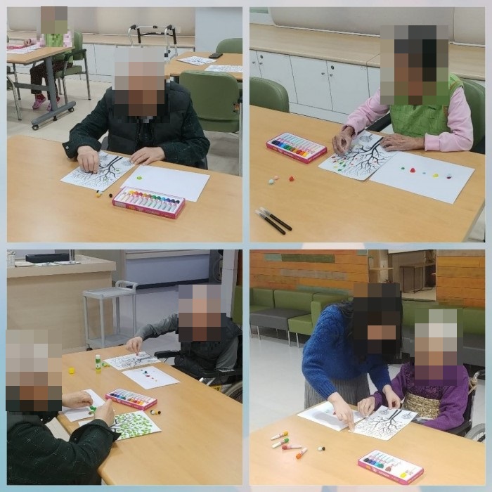 우리 어르신들 때 손가락 지문으로 찍으시고 나무들이 풍성해 지는 시간이 였습니다!!!