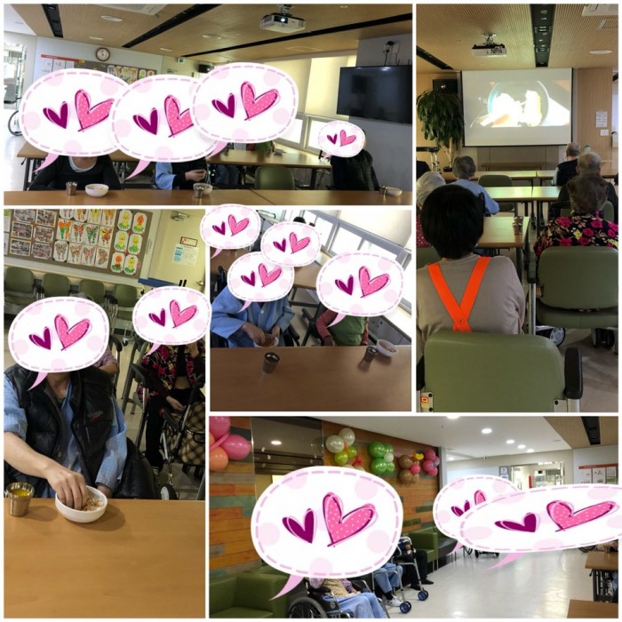 11월 15일 오후 프로그램은 영화감상 활동으로 진행되었습니다. '리틀 포레스트'를 감상하게 되었는데요! 도시에서 떠나 시골에서 소소하고 확실한 행복을 찾아가는 주인공의 이야기입니다~ 어르신들이 영화를 보시는 내내 굉장히 편안해하셨답니다 :-) 영화 자체가 편안한 분위기여서 그런 것 같습니다! 어르신들에게 마카로니과자와 음료수를 드렸는데, 감사하다고 말씀하시는 어르신들이 많이 계셨습니다 ~ 항상 우리 어르신들 얼굴만 봐도 행복해집니다 ^^