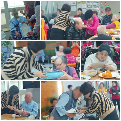 동영상 시청 후 다양하게 준비한 상장과 준비한 선물을 나눠드리며 다함께 성탄절을 축하하는 박수로 마무리하였고, 선물을 받으시고 다들 기뻐하셨으며 다과도 맛있게 드셨다.