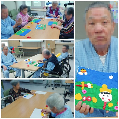 흰색 구름과 노란색, 분홍색, 주황색, 흰색 등등 여러가지 클레이 색을 가지고 만든 것은 이번이 처음이 아닌가 싶습니다 ㅎㅎ 참여하신어르신들이 만들면서 가족들이랑 언제 무슨 꽃을 보러갔고 어떤 것을 구경했으며~서로 이야기하느라 손도 입도 바빴답니다:)