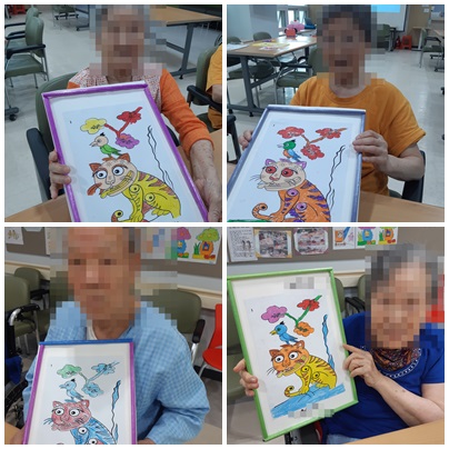 19.08.22.___ 족자만들기(인지프로그램) 페이지 정보 작성자 빅토리야요양원 작성일19-08-23 11:20 조회428회 댓글0건 이전글 다음글 목록 답변 본문 여러가지 그림 중에서도 호랑이 그림이 있는 민화로 준비하여 다양하게 색칠한 후 도화지 한가운데 붙여 겉에는 수수깡으로 붙이고 "나만의 족자 만들기"를 하였습니다^^ 이전글 다음글 목록 답변