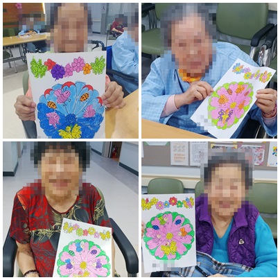19.04.27.___미술치료(만다라 색칠) 프로그램 활동 사진 페이지 정보 작성자 빅토리야요양원 작성일19-04-27 16:37 조회735회 댓글0건 이전글 다음글 목록 답변 본문 단순한 도안이면서 생각외로 난이도가 조금 있는 활동지임에도 불구하고 어르신들께 나눠드리자 '곤충들이네~ 여기는 벌, 무당벌레, 나비네~'라는 반응을 해주셨고 재빠르게 색칠을 다하시고는 옆에 어르신들을 협동하여 도와주기도 하면서 도란도란 이야기도 나눴습니다:) 이전글 다음글 목록 답변