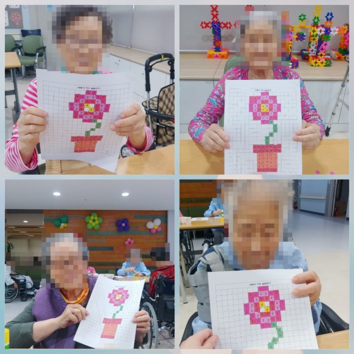 오늘 오전에는 어르신들과 숫자퍼즐로 꽃화분을 만들어보았습니다:D