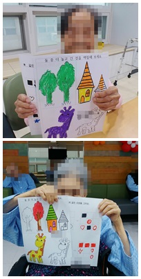 19.04.25.___인지프로그램(길이비교하기) 활동 사진 페이지 정보 작성자 빅토리야요양원 작성일19-04-25 11:09 조회711회 댓글0건 이전글 다음글 목록 답변 본문 두가지 그림 중 어떤 것이 더 길고 높은지 생각하여 해당되는 부분만 색을 칠하는 활동지와 왼쪽에 네모,별,하트,동그라미 도형들이 그려진 것을 잘 보고 오른쪽에 똑같은 위치에 그려볼 수 있는 시간을 가져보았습니다. 이전글 다음글 목록 답변
