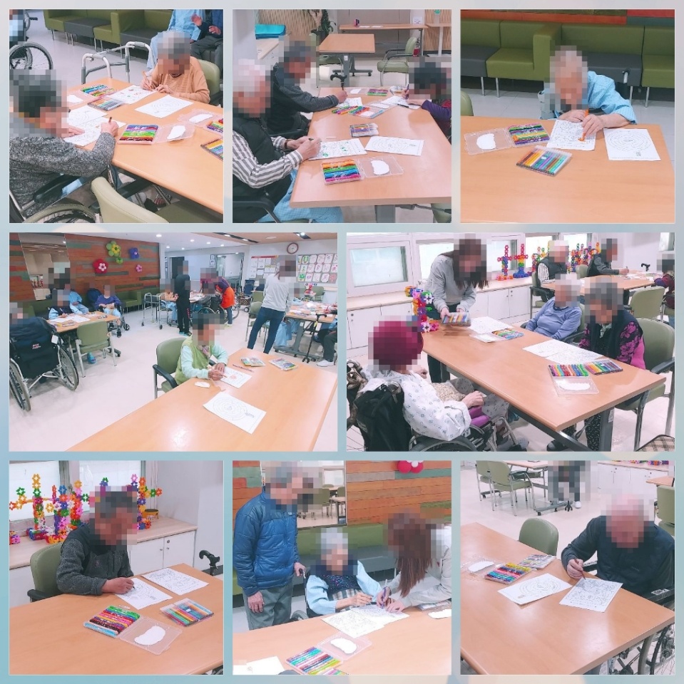 19.03.28.____미술치료(선이어그림완성) 프로그램 활동 사진입니다.