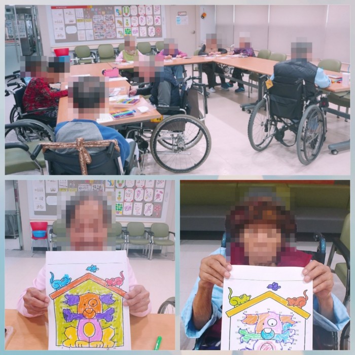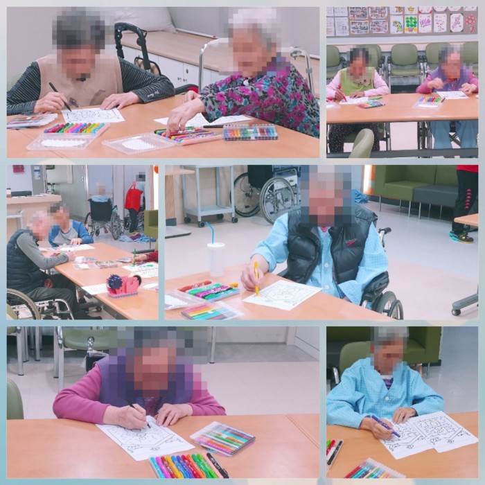 어르신들께서 숫자 1부터 50까지 찾아서 점을 이어 선을 그리고 알록달록하게 색칠도 해주셨답니다~