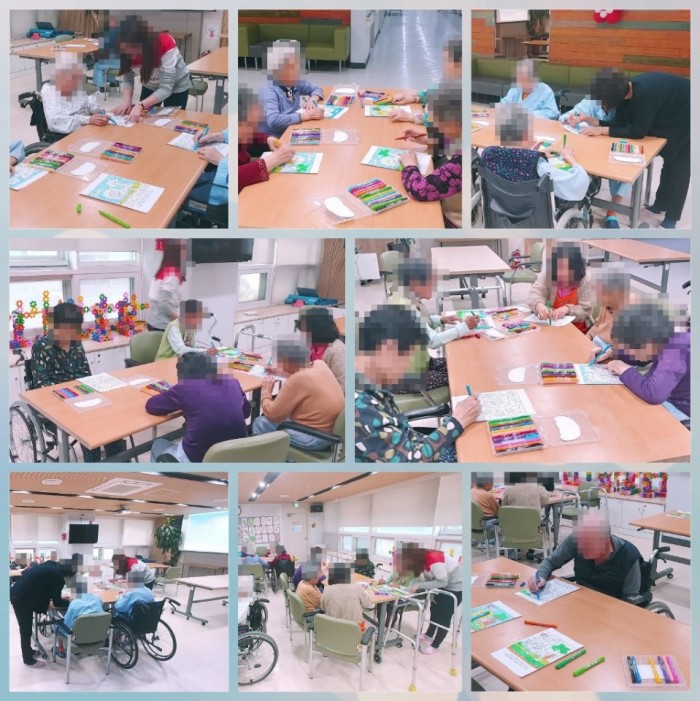 그림을 다 완성하면 보이는게 '사자' 이고 인지가 좋으신 어르신들께는 충분히 혼자서 숫자 찾음녀서 색칠하는데 어려움이 없었고 서로 이야기도 도란도란 나누면서 프로그램 진행 중 분위기도 상당히 화기애애하게 전반적인 만족도 역시 높았다고 평가됩니다^^ 우리 어르신들 다들 화가 하셔도 되겠어요^^