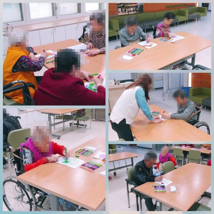 어르신들이 알록달록하게 색칠하시면서