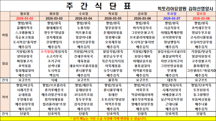 3월 1주차 식단표
